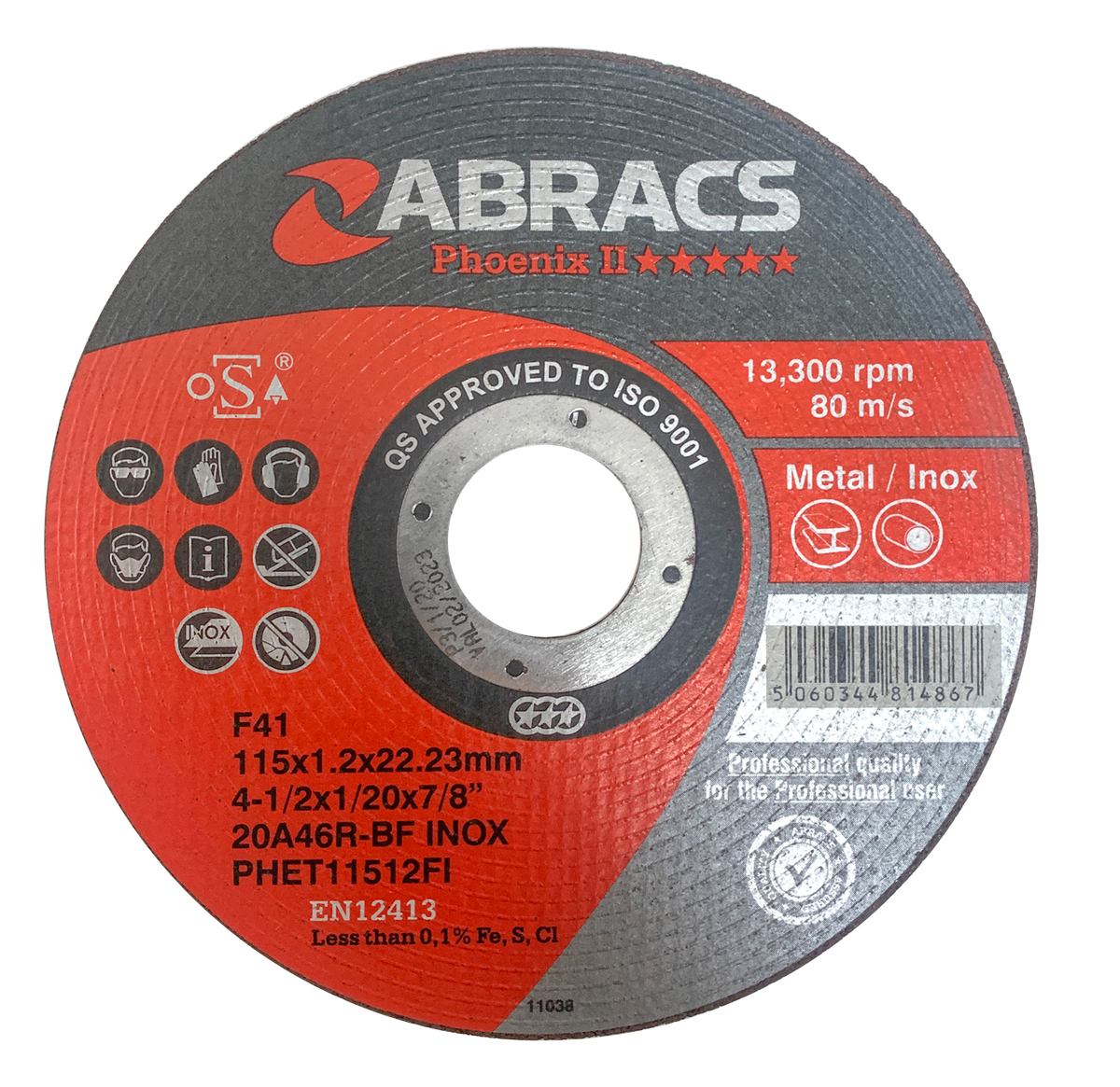Abracs Phoenix Extra Thin Cutting Discs, 115mm x 1.2mm x 22mm - Pack of 50, PHET11512FI