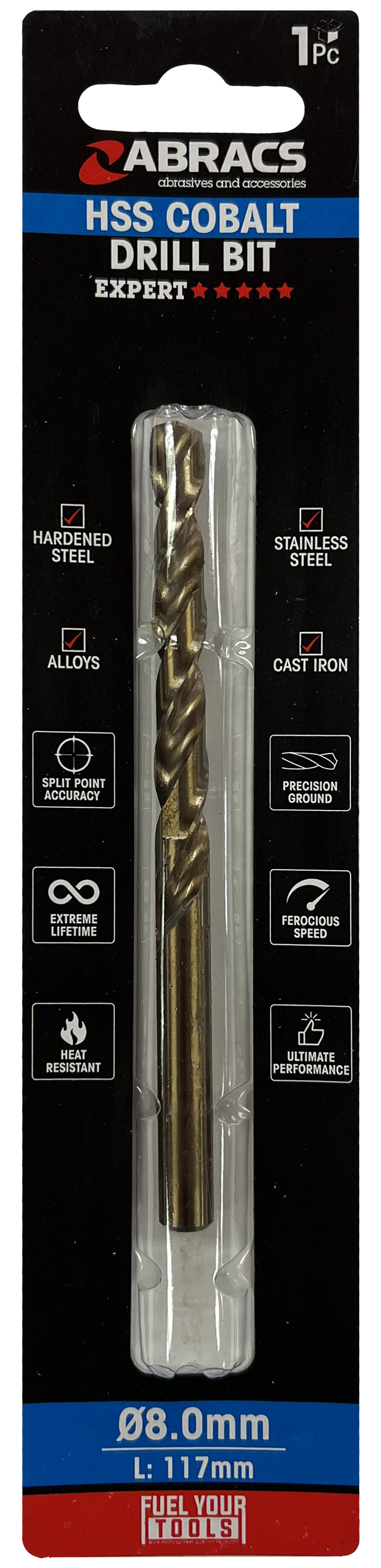 Abracs 8.0mm Cobalt M35 HSS Drill Bit - Pack of 1, DBCB08001