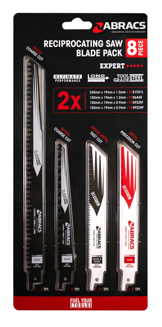 A. It contains a mixed selection of reciprocating saw blades suitable for cutting both wood and metal materials.