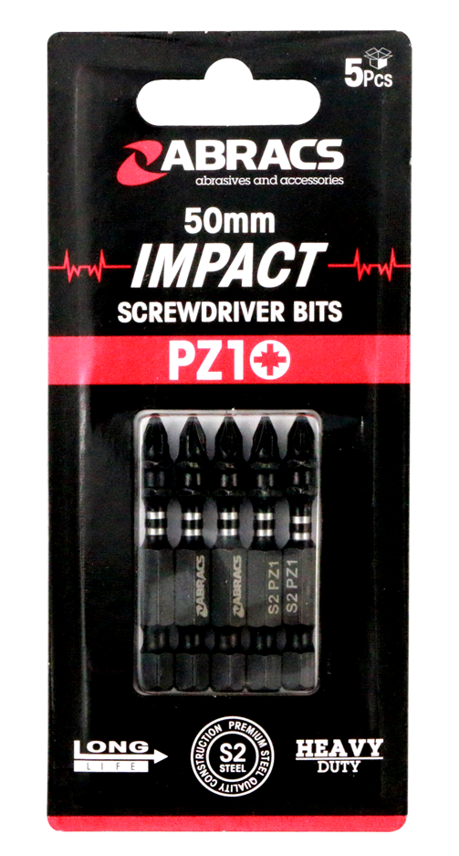 Abracs 50mm Impact S/D Bit - PZ1 - 5(Pcs) Pack of 1, IPZ15005