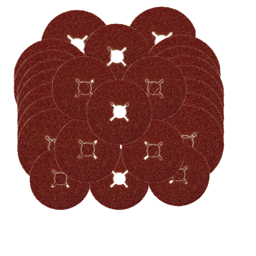 A. The disc is 115mm in diameter with a 36 grit aluminium oxide abrasive, supplied in a pack of twenty five pieces.