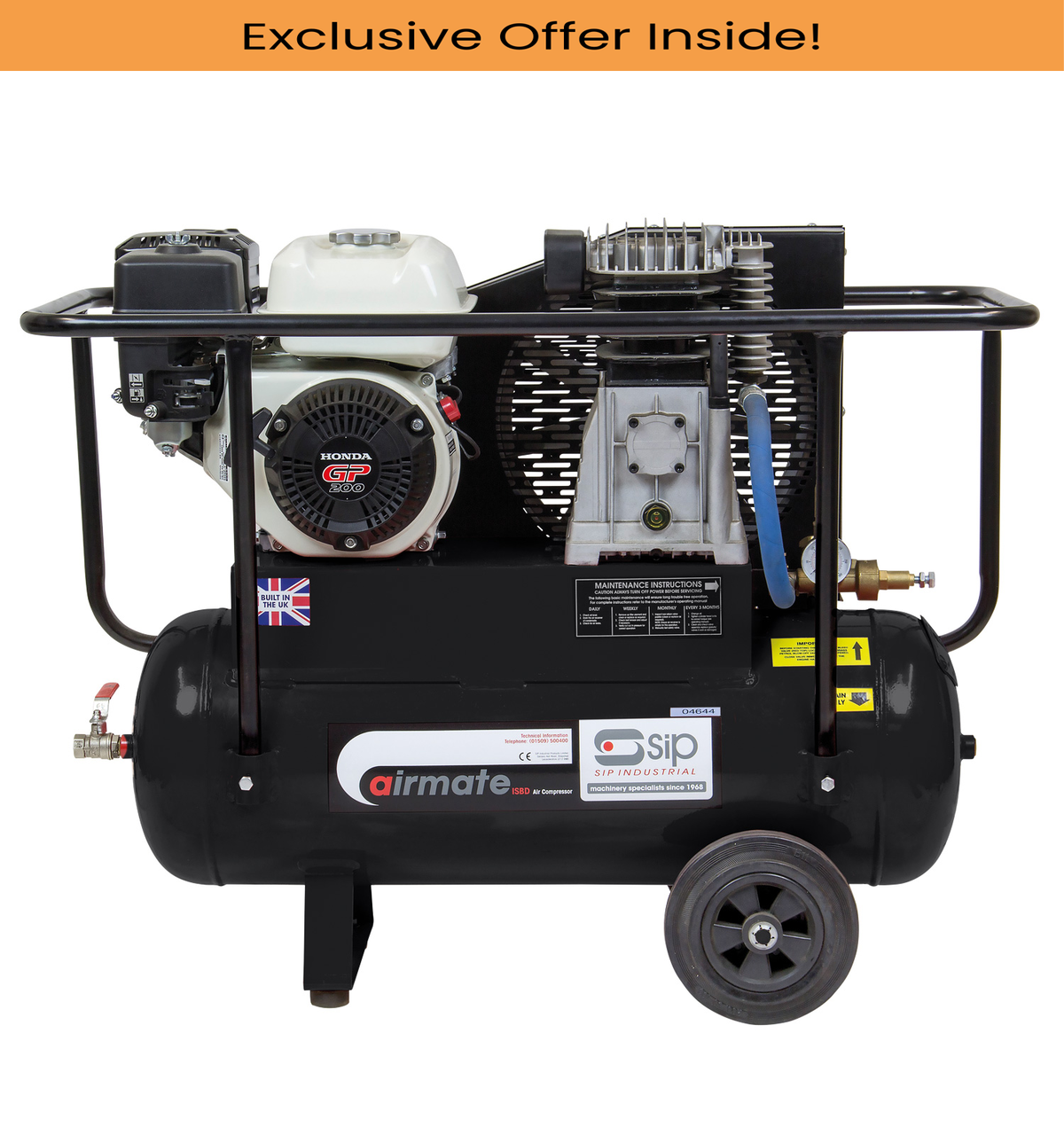 SIP 04444 ISHP5.5/50 Super Petrol Compressor, Tank Capacity - 50 Litre, Max. Air Pressure - 10.3 Bar
