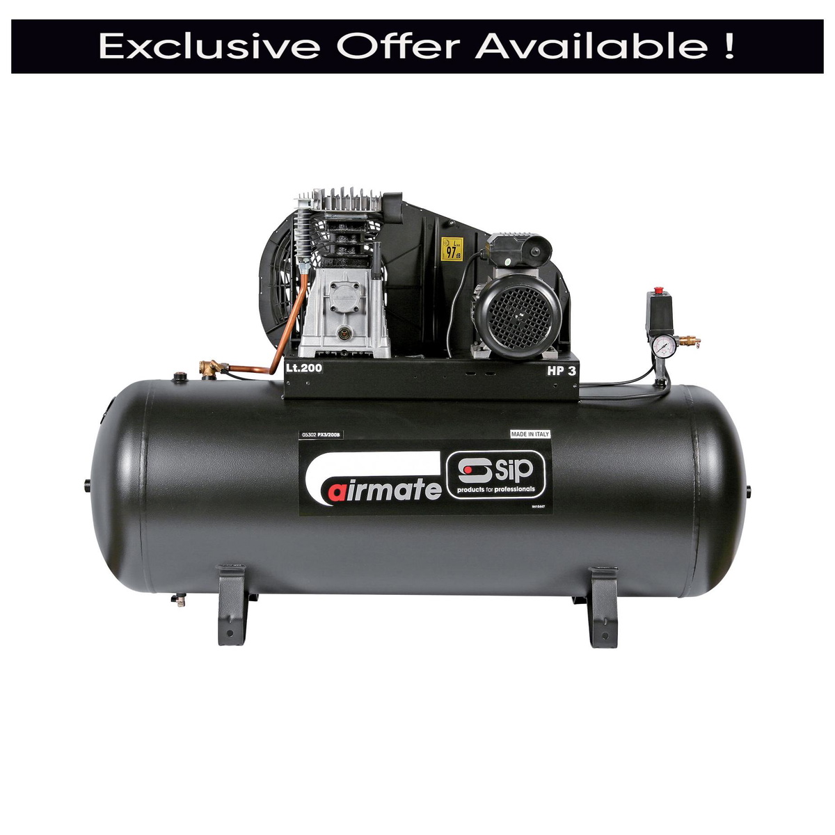 SIP 05302 PX3/200-SRB Belt Drive Compressor, Tank Capacity - 200 Litre, Max. Air Pressure - 10 Bar