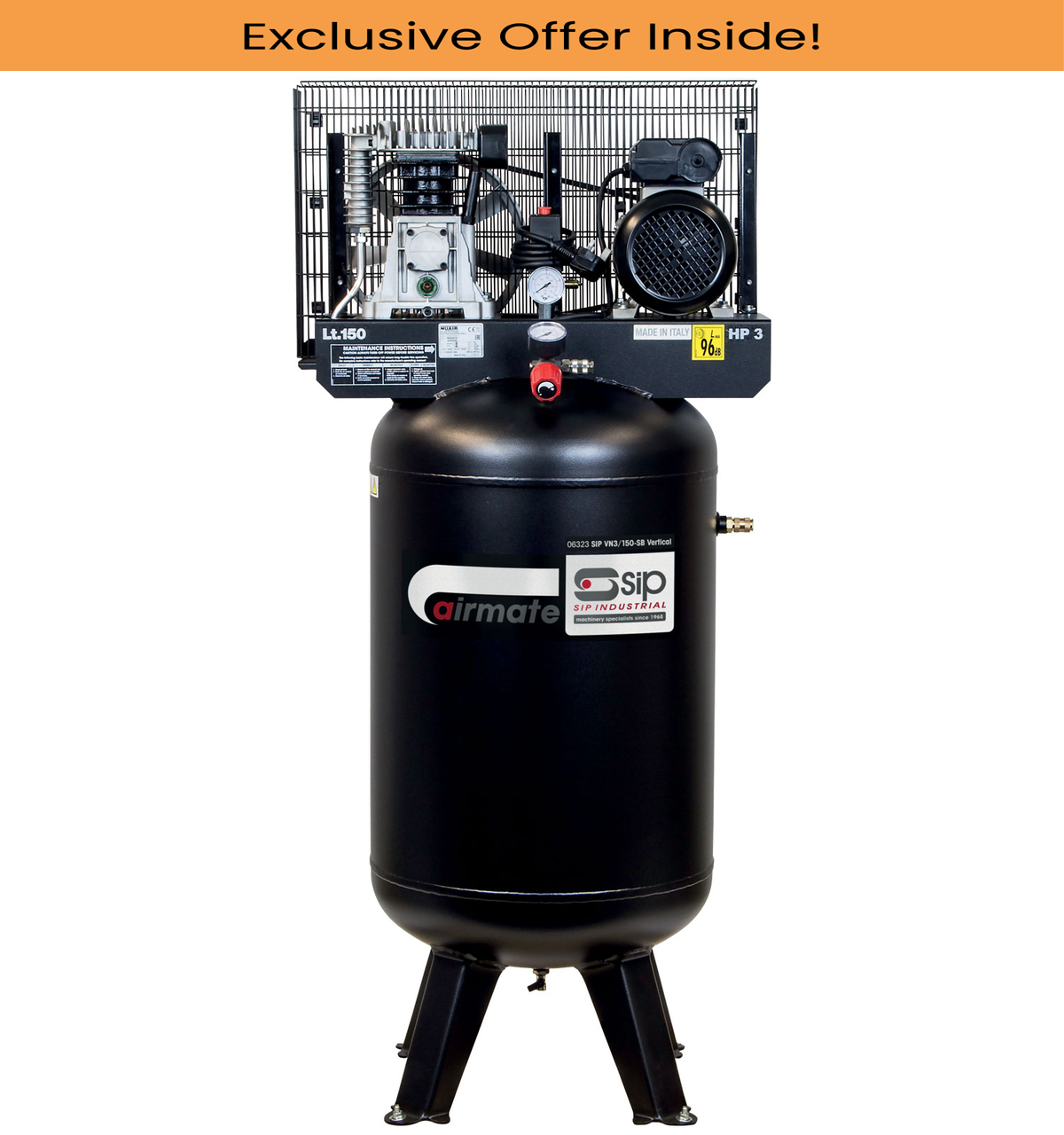 SIP 06335 VN5.5/150-TB Vertical Compressor, Tank Capacity - 50 Litre, Max. Air Pressure - 10 Bar