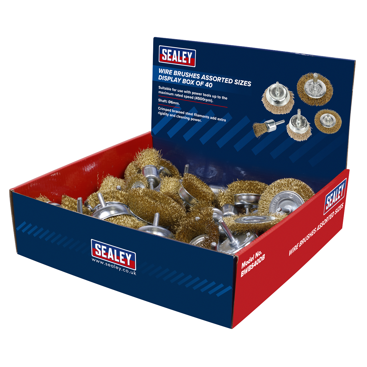Sealey WB05DB24 Wire Brush Brassed Steel Plastic Handle Display Box of 24